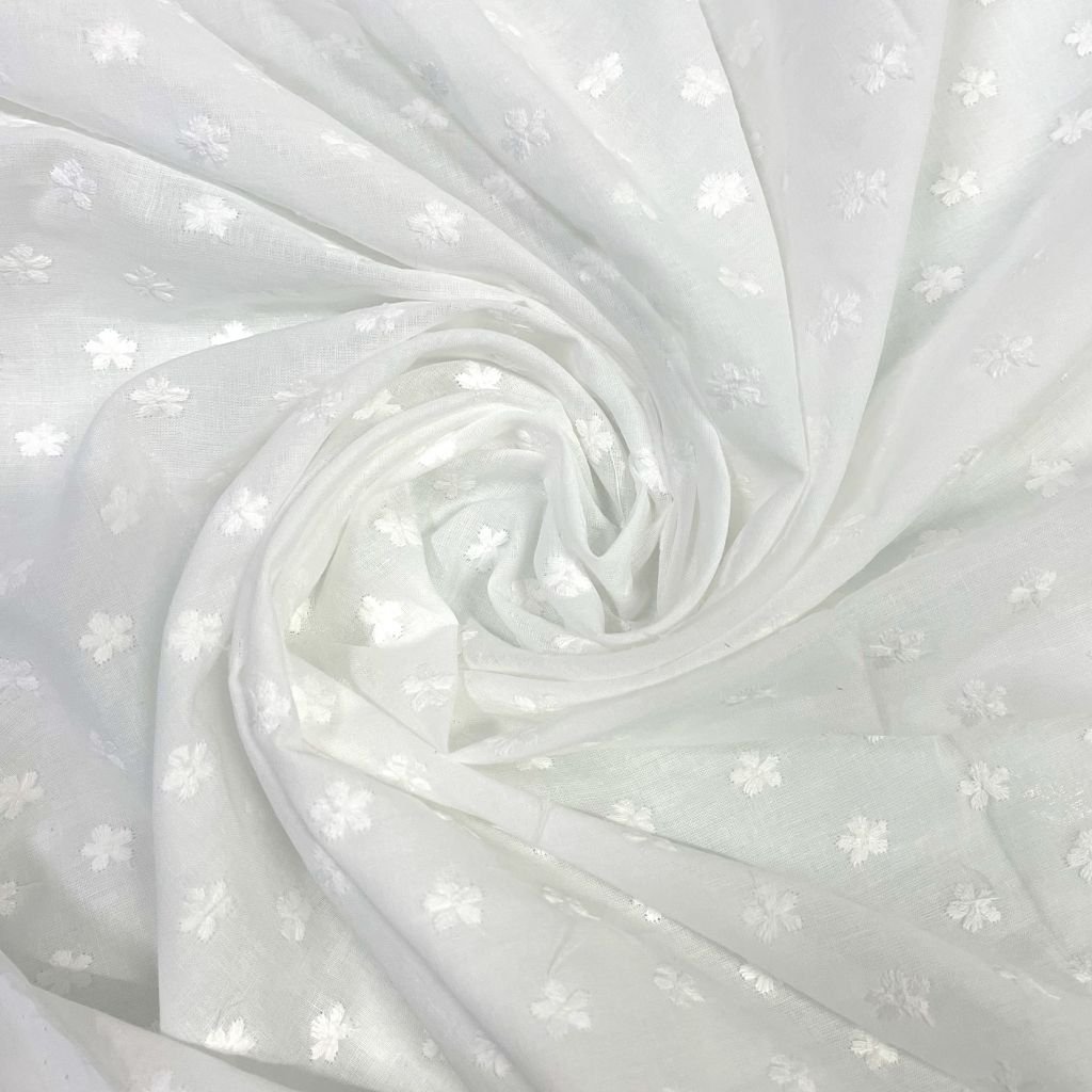 Батист молочный в мушку цветок