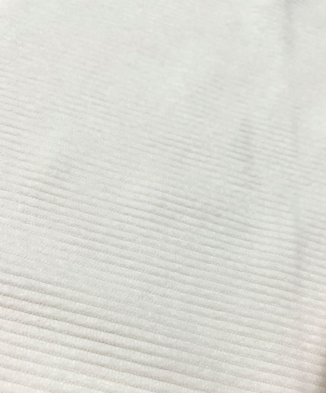 Плотный, и в то же время приятный материал с матовым блеском по лицевой стороне и нежной бархатистой поверхностью. На лицевой стороне классический ворс, создающий фактуру в полоску. Хорошая плотность ткани обеспечивает ее высокую износостойкость. Вещи из вельвета всегда актуальны, удобны в носке и не мнутся. Ткань прекрасно подходит для пошива свитшотов, платьев, юбок, а также спортивных костюмов.